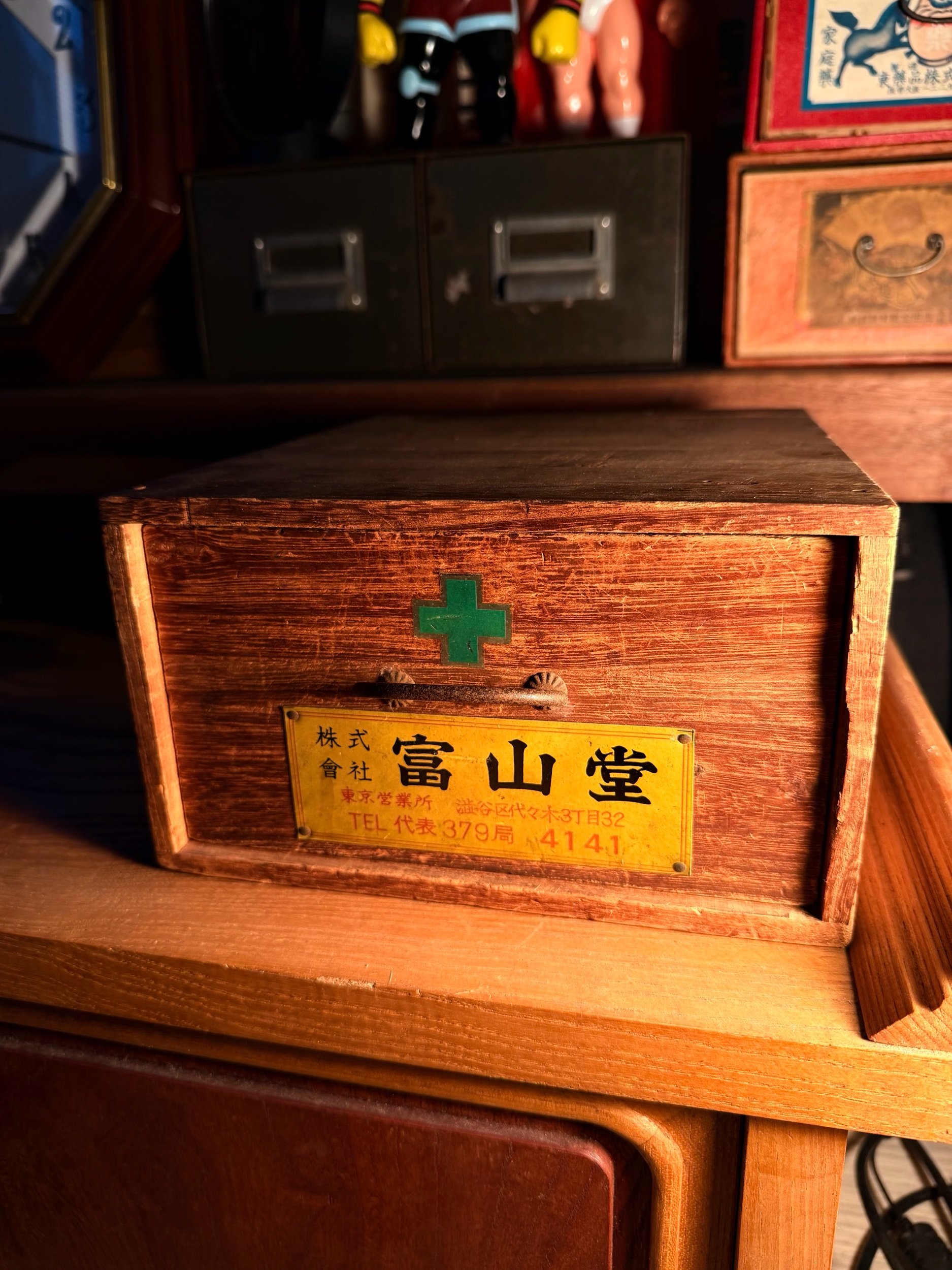 日本 富山堂 昭和木製藥箱